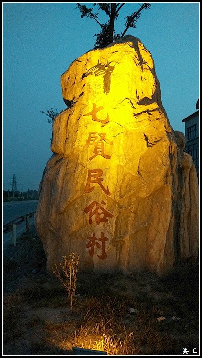 大门外的石刻“七贤民俗村”。