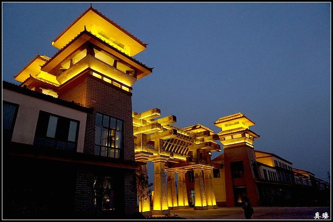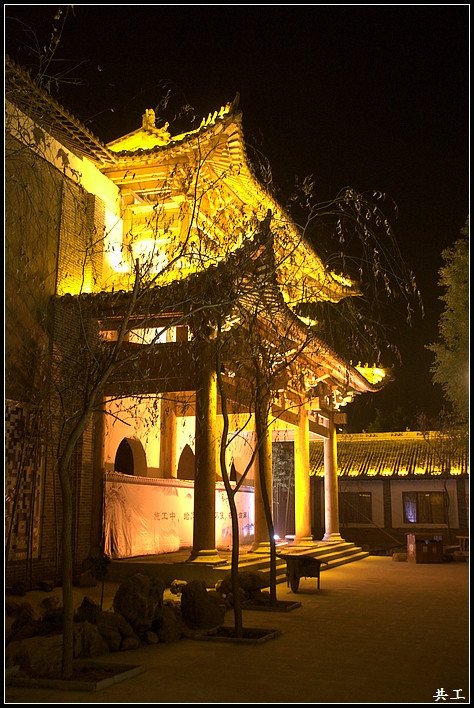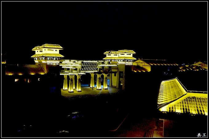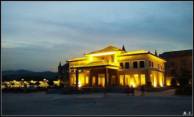 在民俗村玩够了,我们回到大院内,这个温泉建筑也被灯光覆盖。