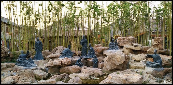这才是点题的所在——竹林七贤群像雕塑。