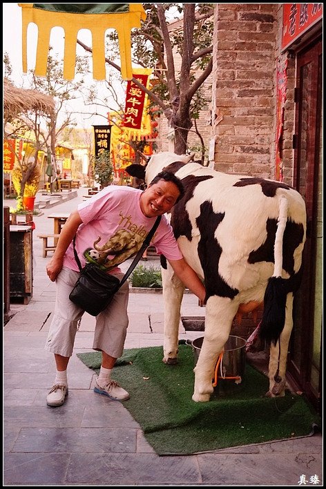 在这家“老酸奶”门口,还有一头奶牛模型。挤挤看,看能否挤出点奶来。
