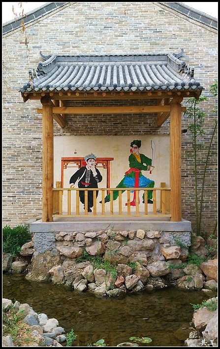 这是一个仿古戏台,小巧玲珑。